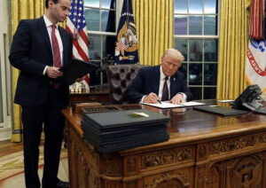 As is tradition, the Oval Office received a makeover to suit the preferences of the incoming president. During Inauguration Day ceremonies, White House staff replaced rugs, drapes, and decor to reflect Trump’s taste.